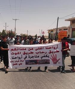 المفرق : محتجون يغلقون طريق رحاب بعد دهس طفل19-07-2015 02:23:37 -