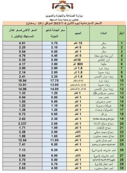 النشرة الاسترشادية لاسعار السلع ليوم الاثنين06-07-2015 10:42:35 -