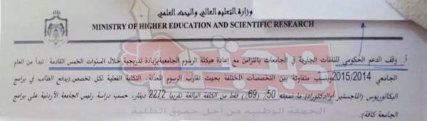 "ذبحتونا" : وثيقة تؤكد نية الحكومة رفع الرسوم الجامعية27-05-2015 12:29:55 -